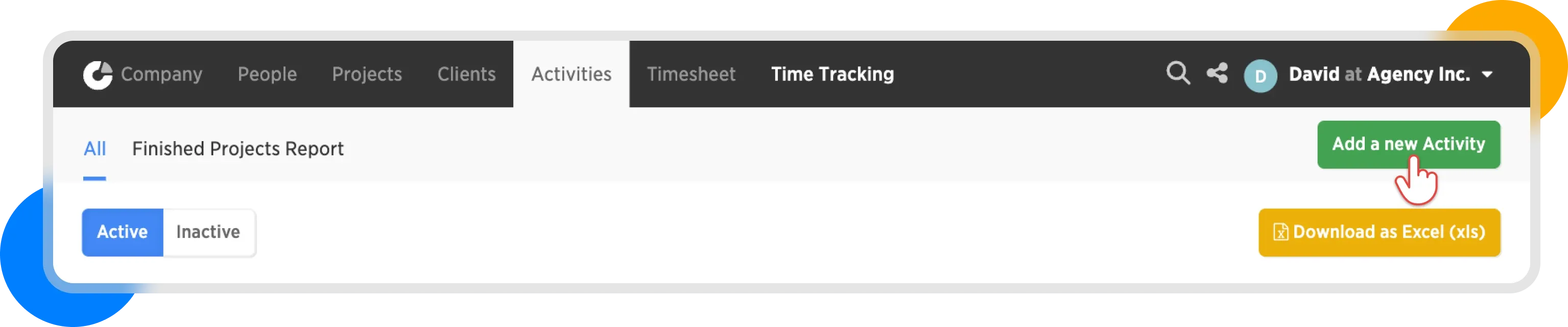 In the top menu, select the Activities tab and then click on Add New Activity on the right.