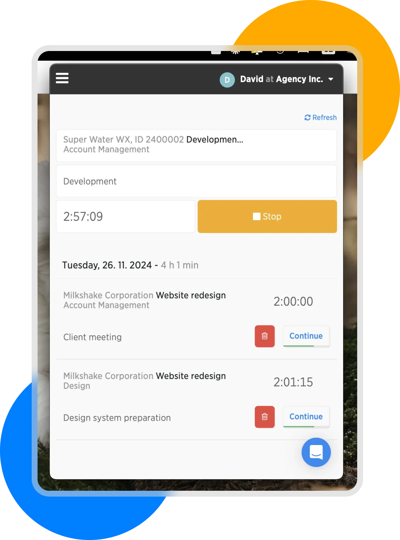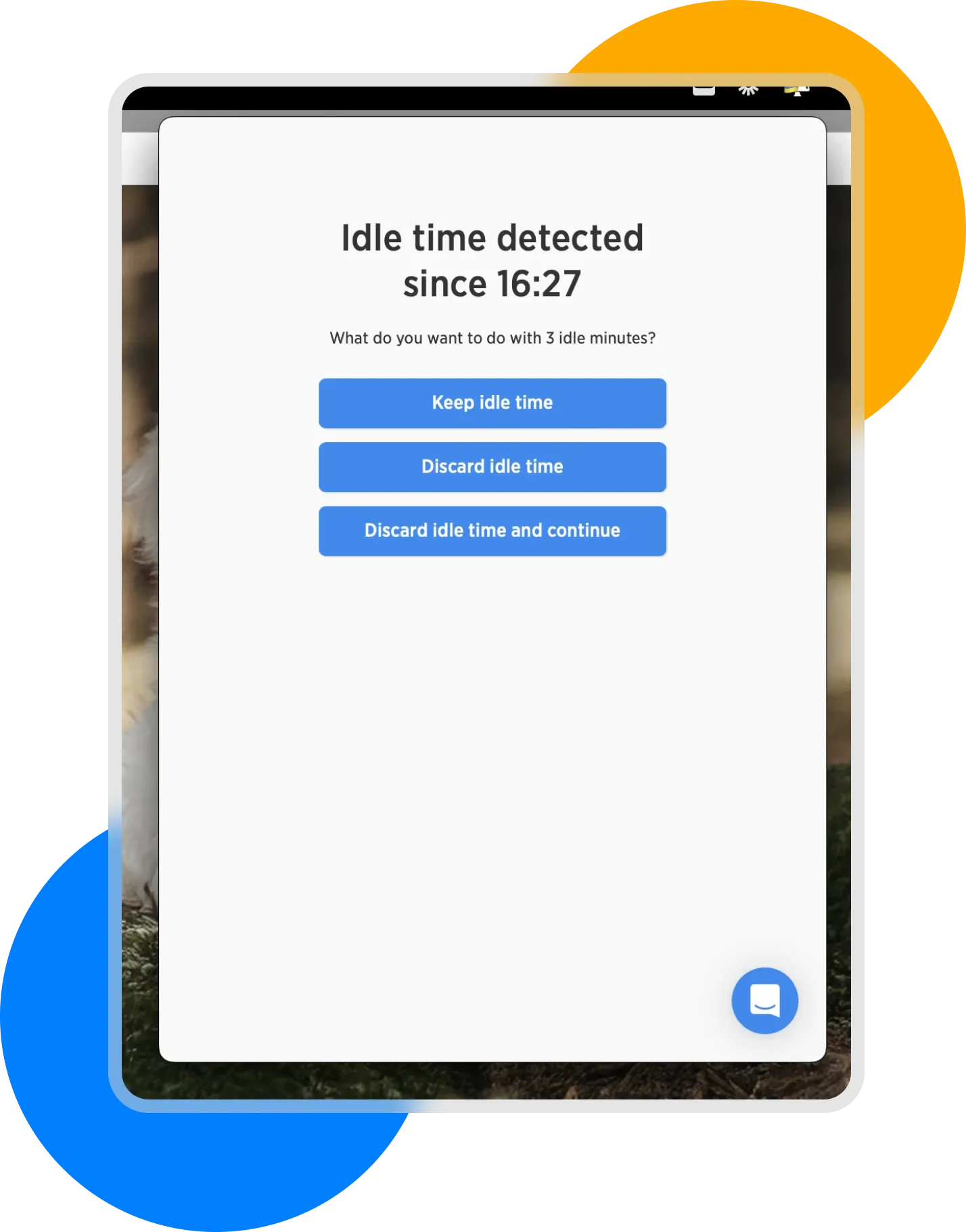 If you have time tracking running but are not active on the computer, the application will notify you and give you options for what to do with the time.