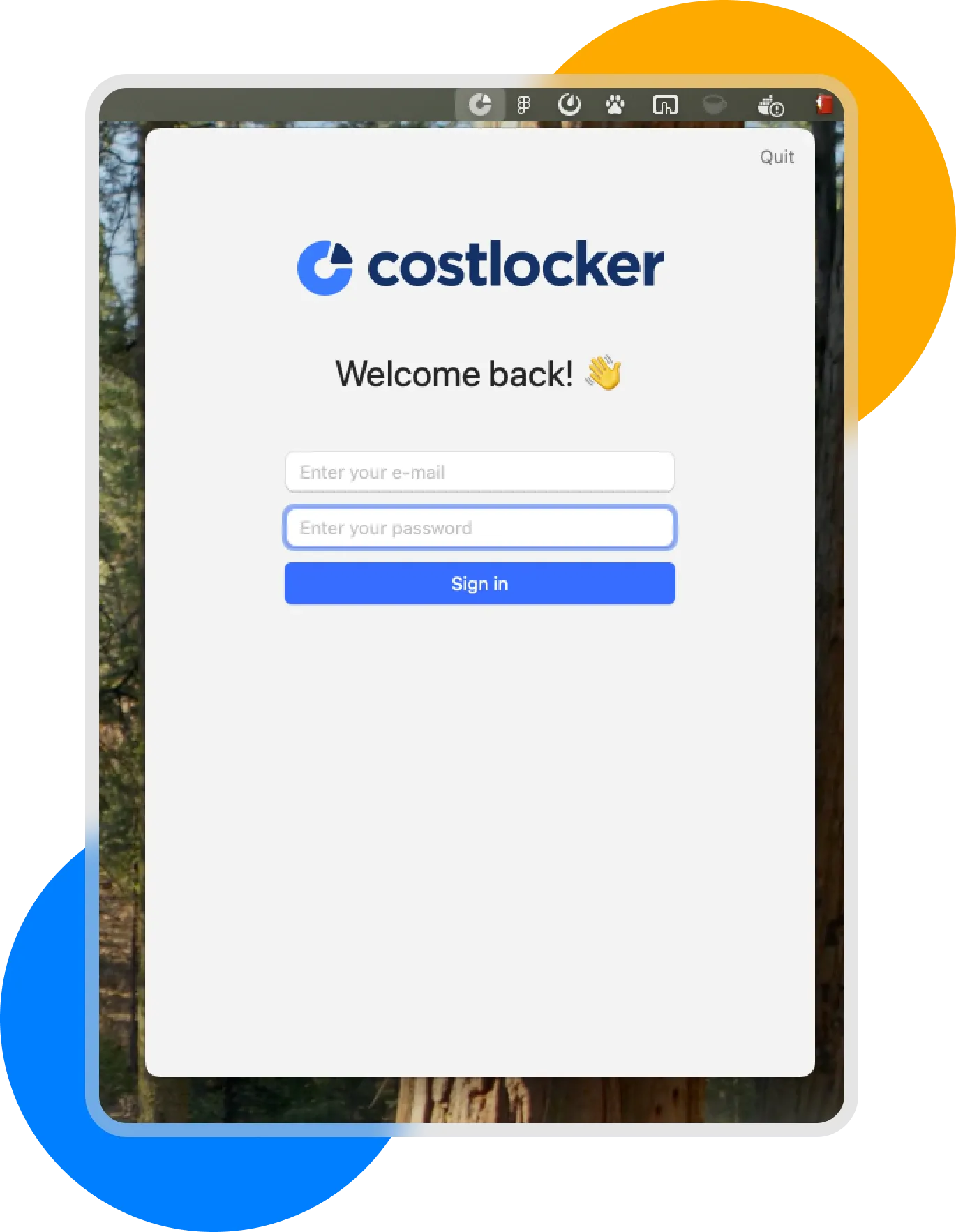 After launching, an icon with the Costlocker logo will appear in your top menu bar. When you click on it, a login dialog will appear.