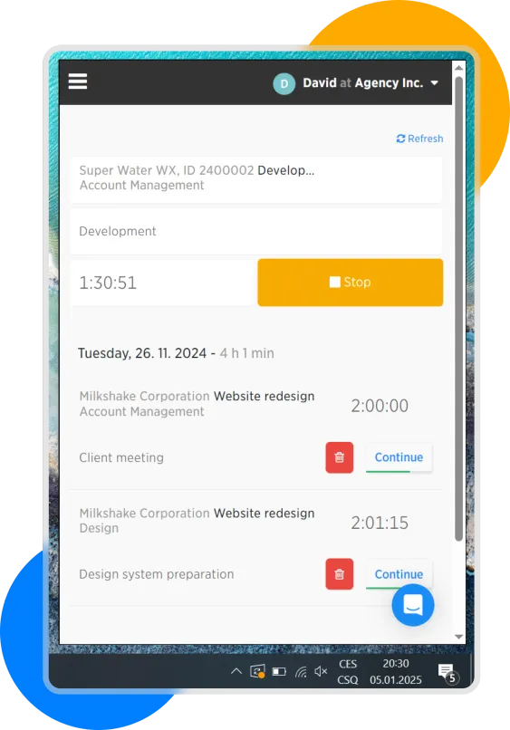 Tracking time in Windows desktop app