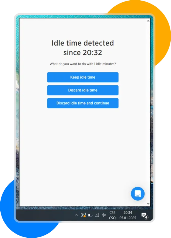 If you have time tracking running but are not active on the computer, the application will notify you and give you options on what to do with the time.