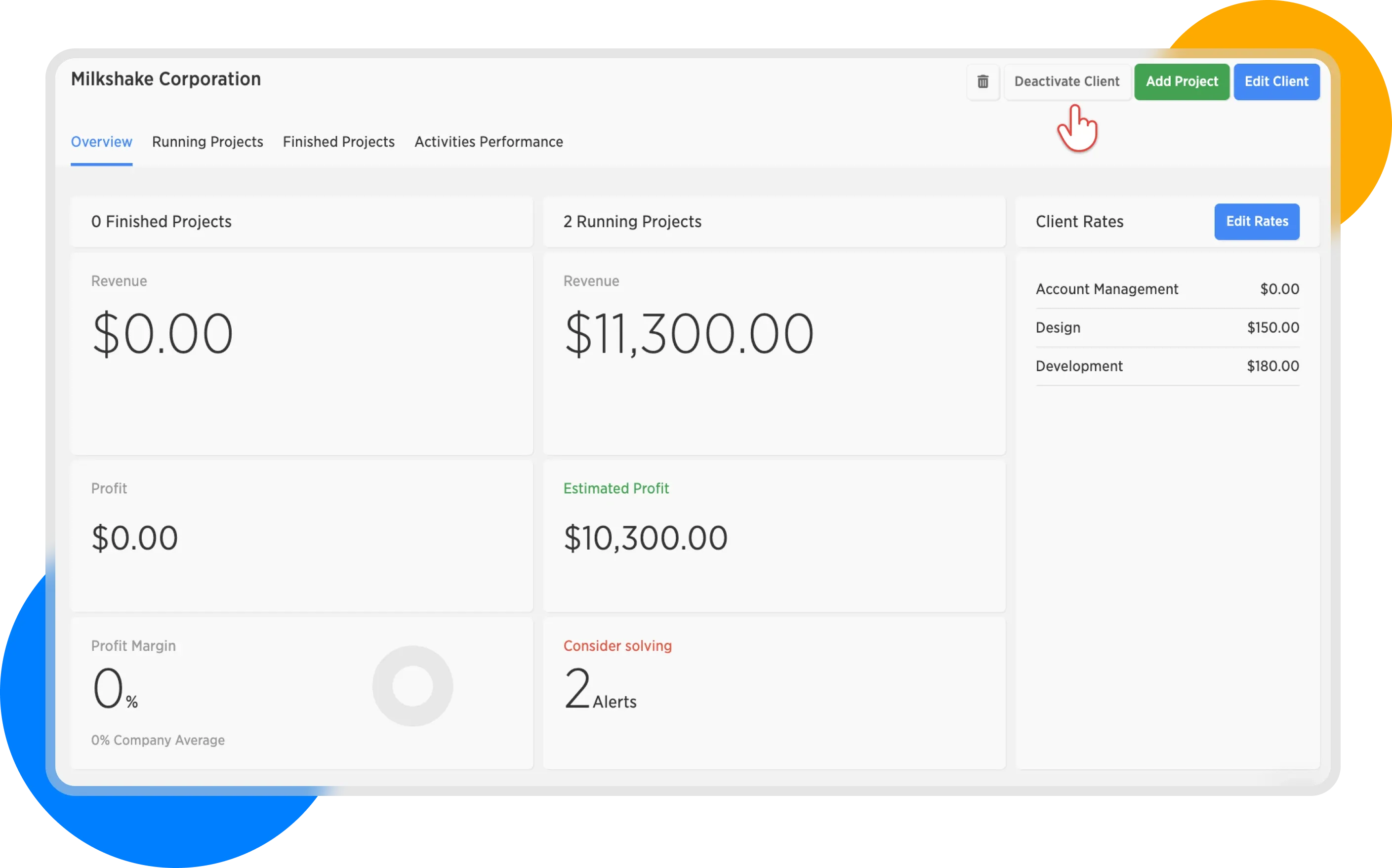 We can set default rates for individual activities for each client. These rates will automatically populate the budget when you add a particular activity to the budget of a client's project.
