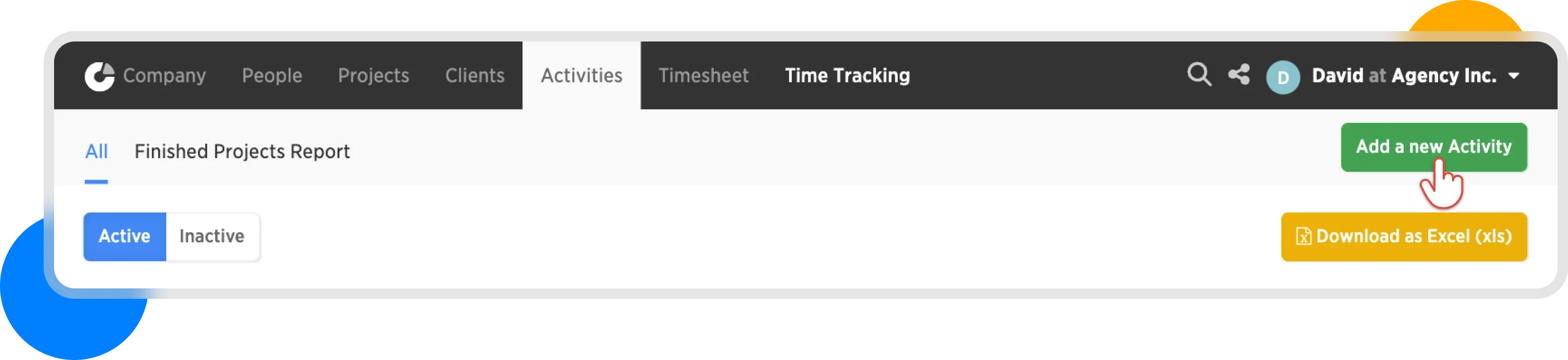 In the top menu, select the Activities tab and then click on Add New Activity on the right.