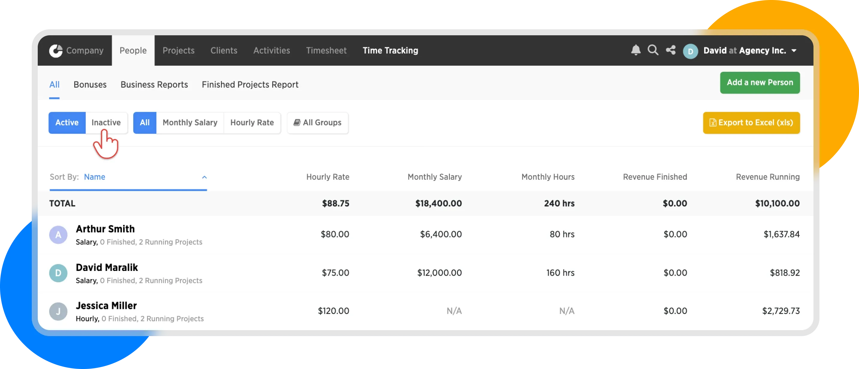 In the People tab, open the details of the person you want to deactivate. Then, in the top right corner, click the Deactivate Person button. Confirm your choice in the dialog box.