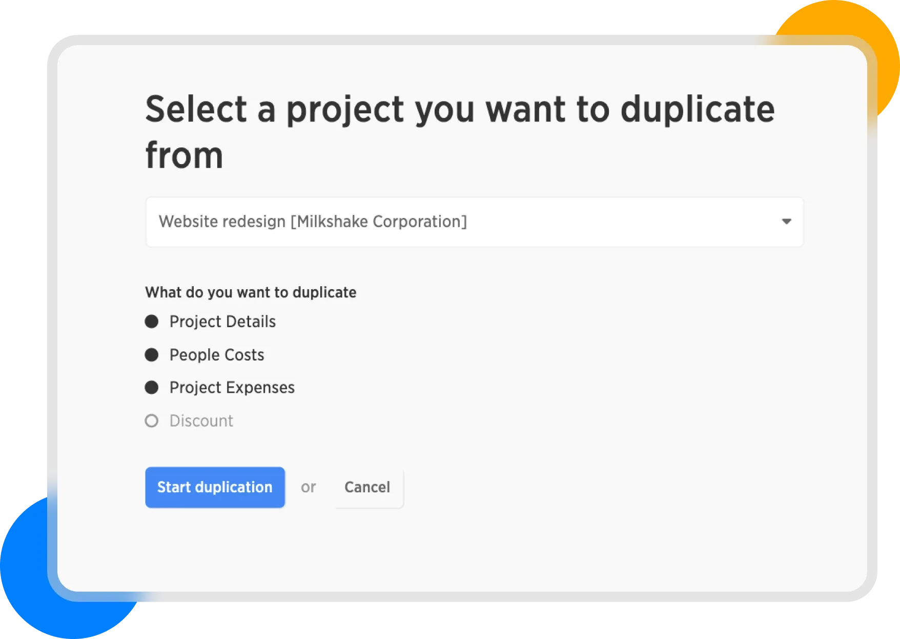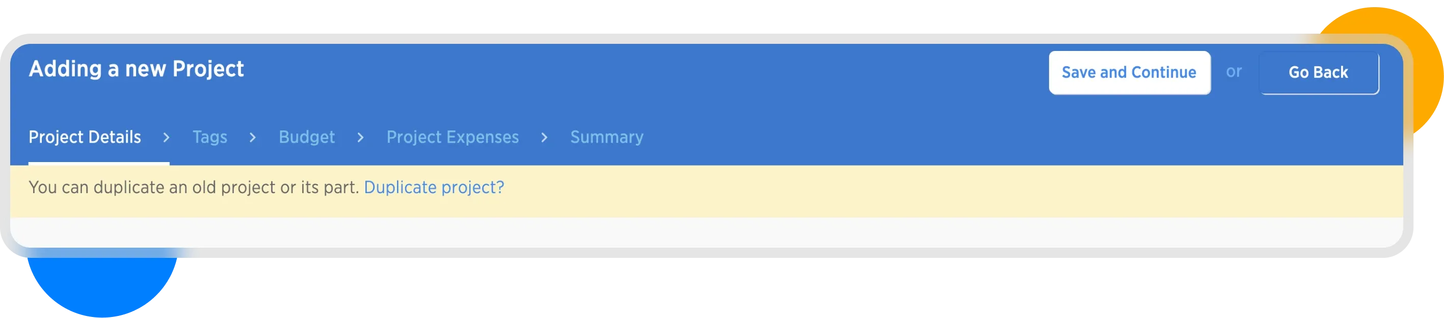 Once you click on Start Duplicating, all the selected data will be pre-filled. You can then freely modify the fields, just as you would when creating or editing a project.
