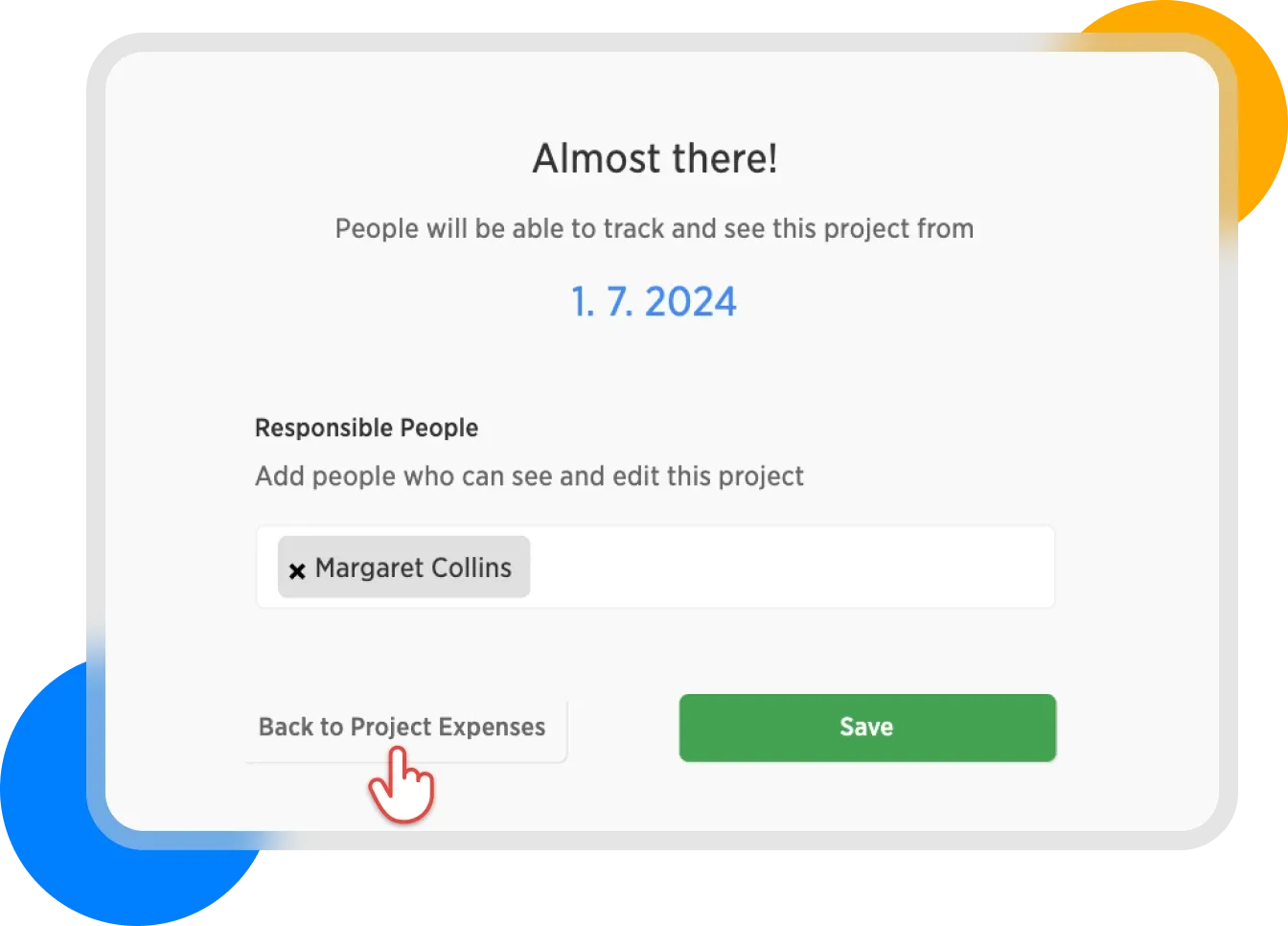 When creating a new project, set the Responsible Person in the final step Summary: