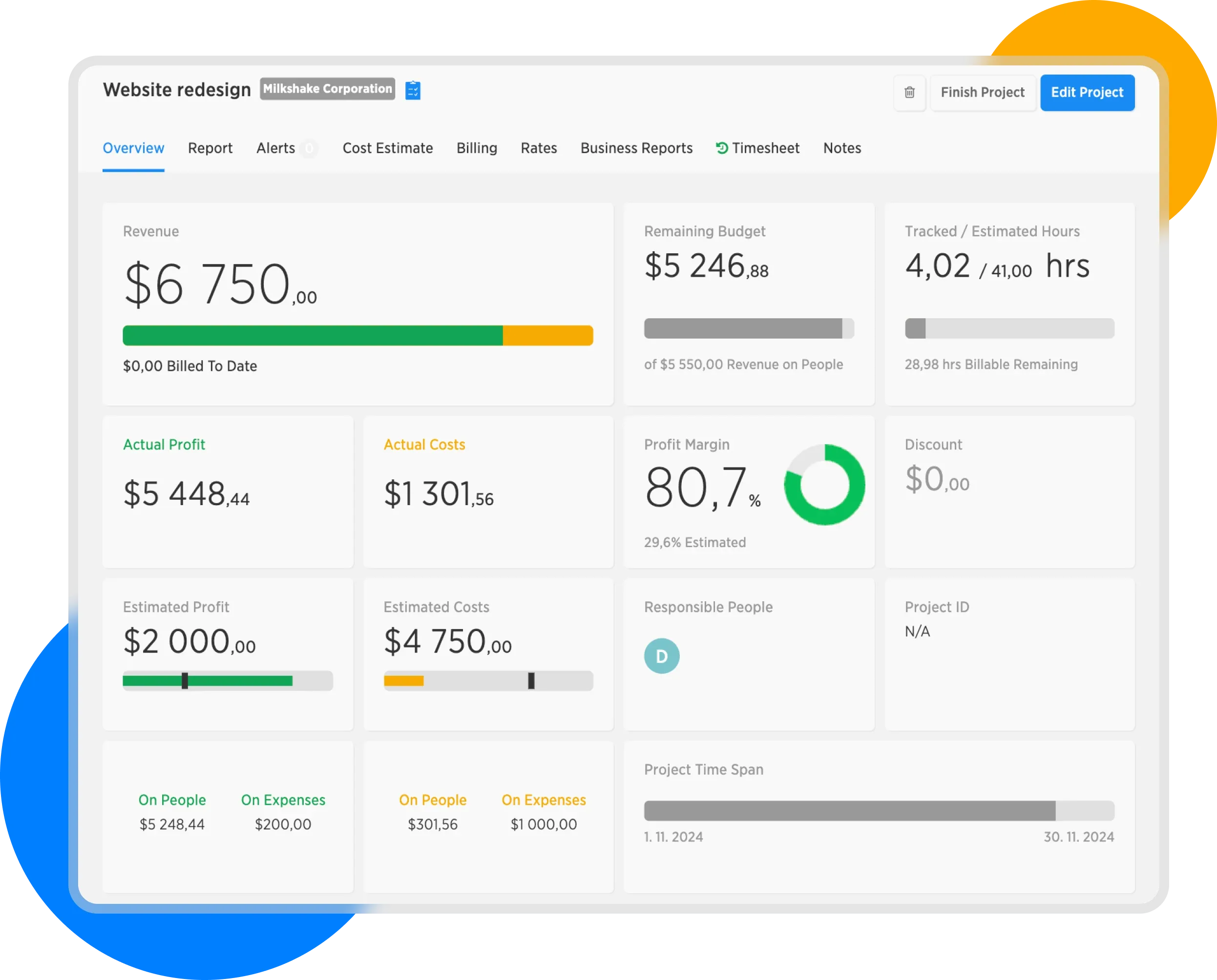 This is the total amount you're supposed to receive for the project — that is, the cost for team members' work plus the total sum of the sales prices of Project Expenses.