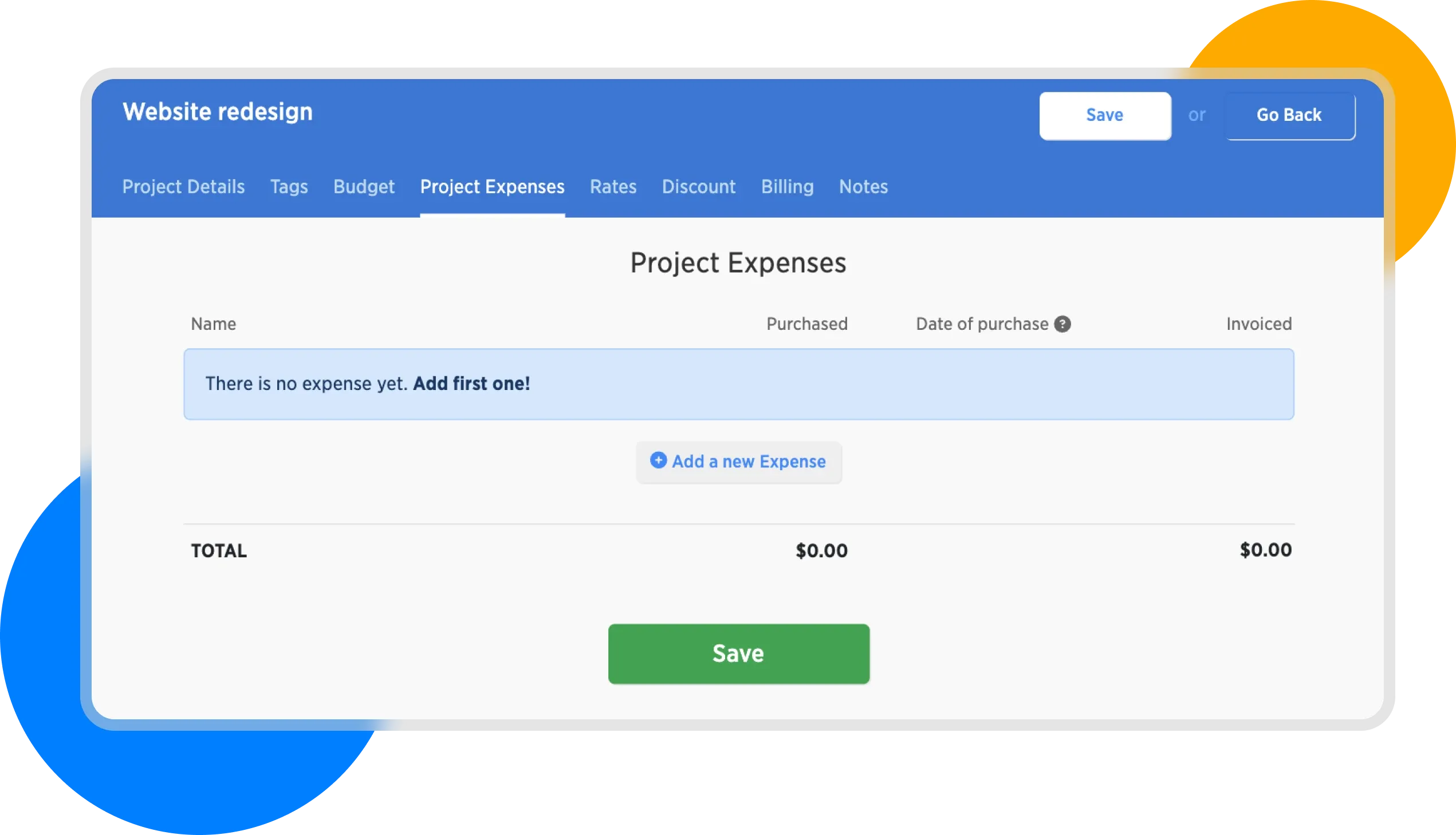 Project expenses are used to record external purchases associated with a project. These are usually subcontracted freelancers providing services at a predetermined price or various resales. A few examples include: