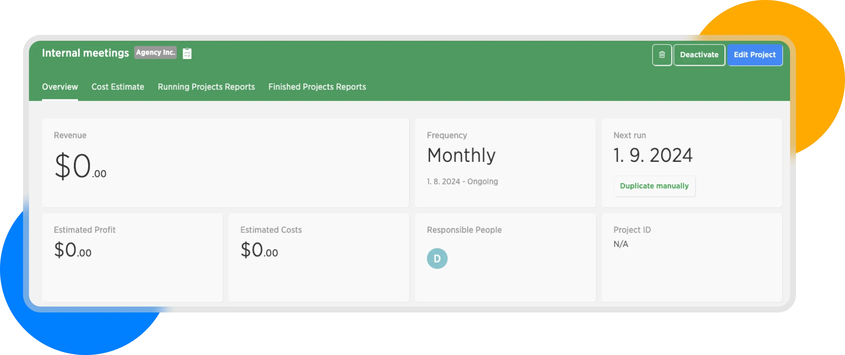 Within the project detail, you have access to reports of both ongoing and completed projects, enabling you to evaluate the recurring project comprehensively.