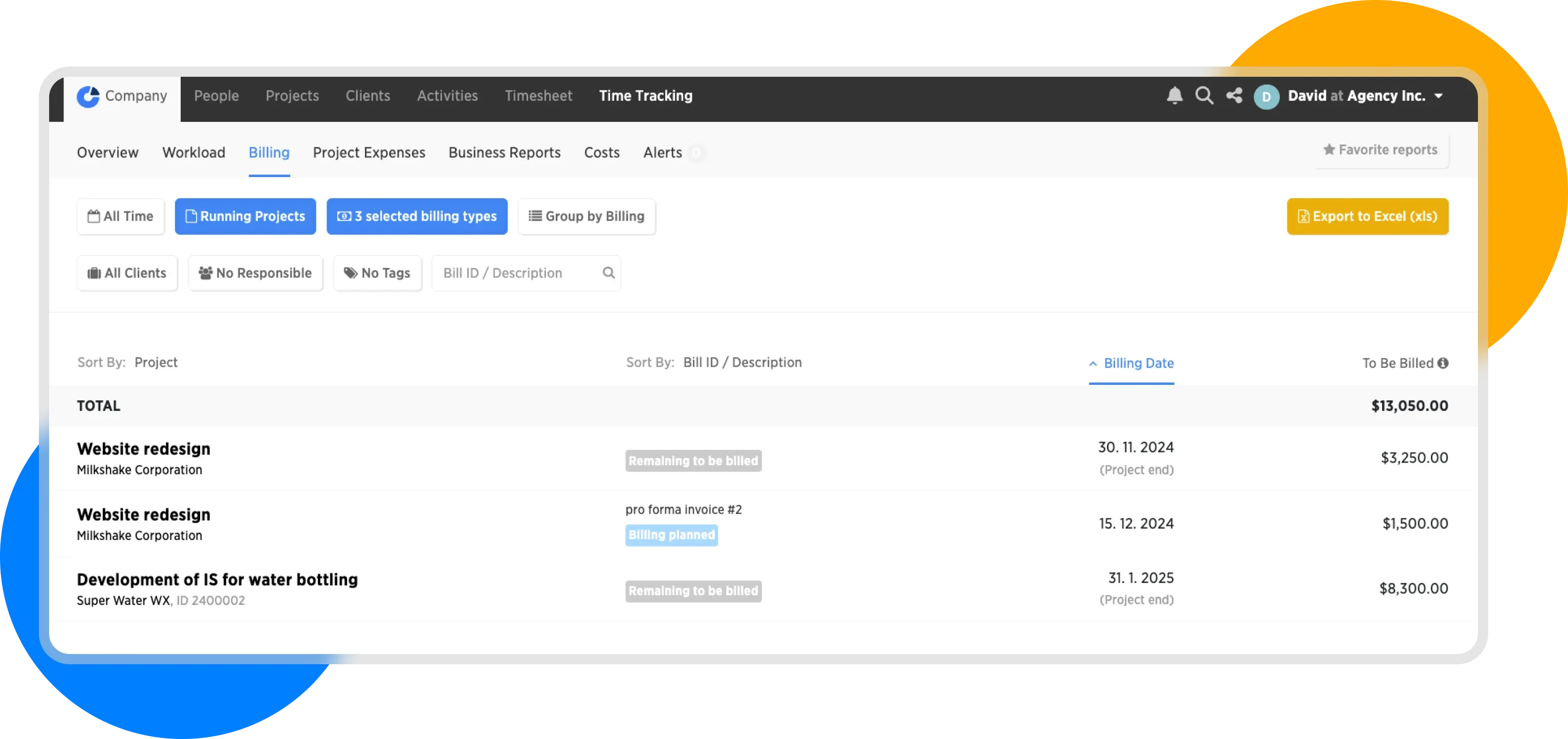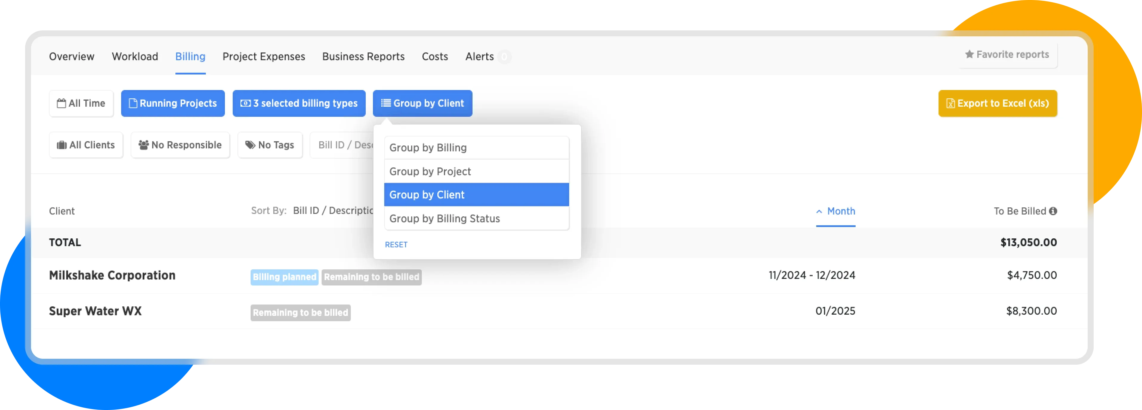 As in other reports, we can view the data from different perspectives. For example, display how much remains to be billed for individual clients.