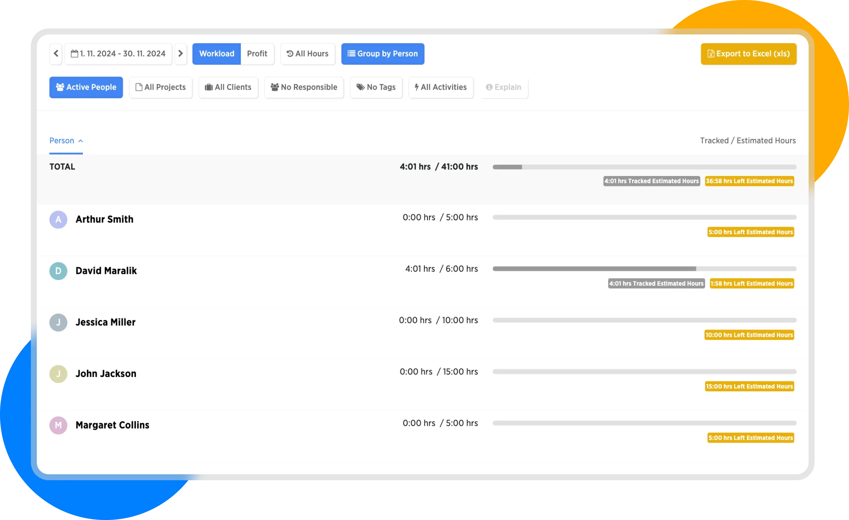 Estimated hours are those assigned to individuals in projects and should be worked within the selected time range.