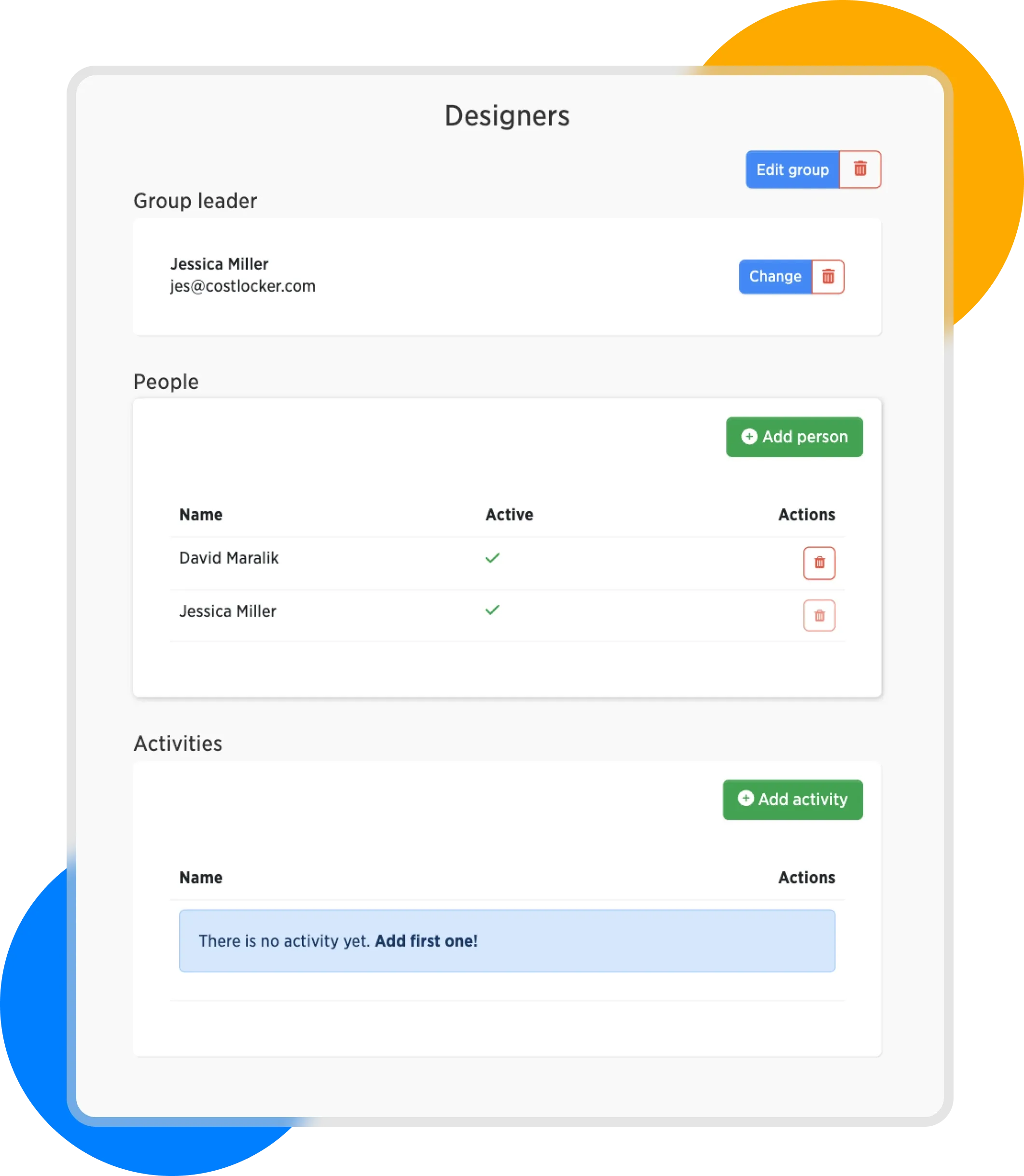 In the group settings, you can choose a leader, manage its members, and the activities related to this group.