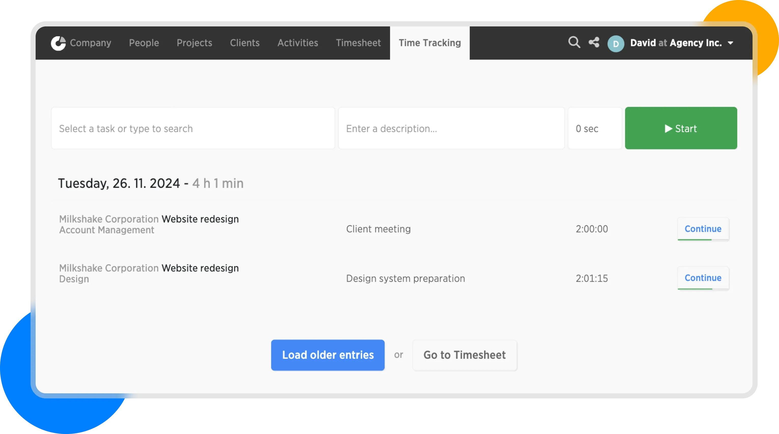 Time entries in Time Tracking