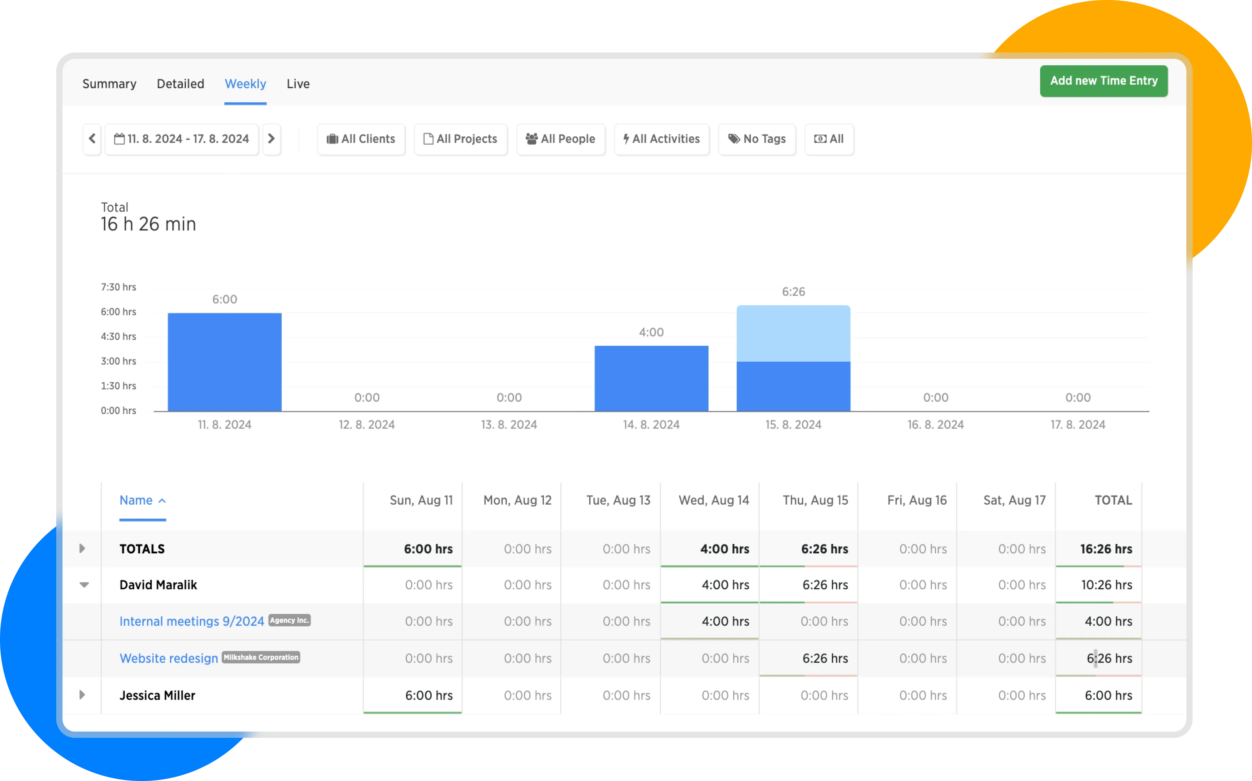 Thanks to this overview, you can see what your employees have been working on during the week.